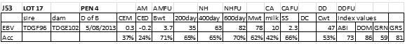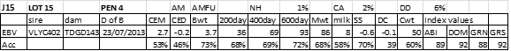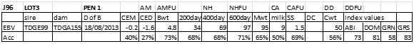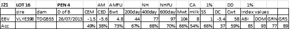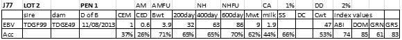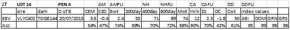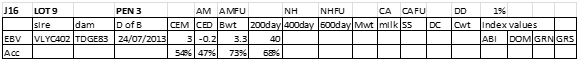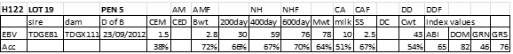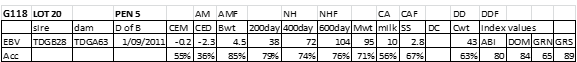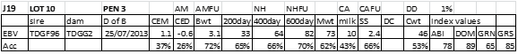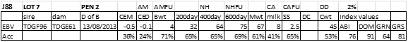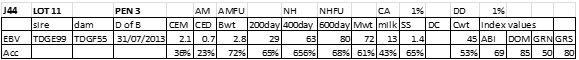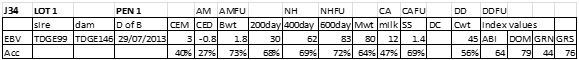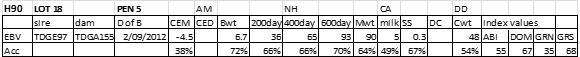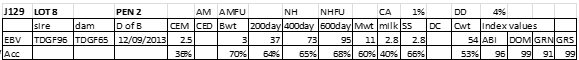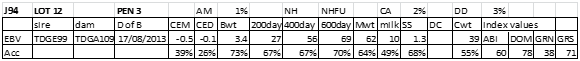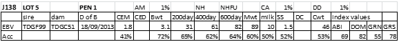 Accuracy (Acc) - Provides an indication of the reliability of an EBV. As more performance information becomes available on an animal (or its progeny, or relatives) then the accuracy of its EBVs for particular traits will increase.